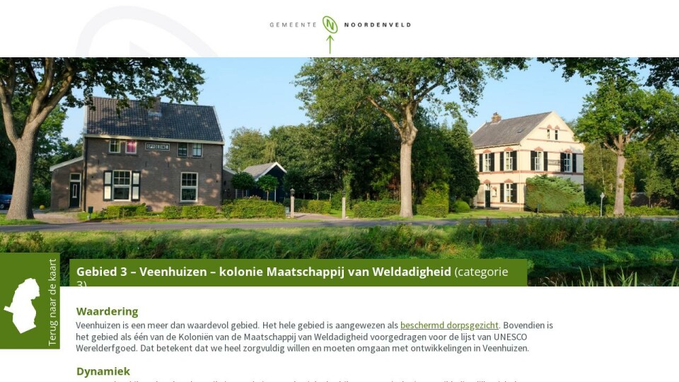 Veenhuizen is een meer dan waardevol gebied. Het hele gebied is aangewezen als beschermd dorpsgezicht. Bovendien is het gebied als één van de Koloniën van de Maatschappij van Weldadigheid voorgedragen voor de lijst van UNESCO Werelderfgoed. Dat betekent dat we heel zorgvuldig willen en moeten omgaan met ontwikkelingen in Veenhuizen.